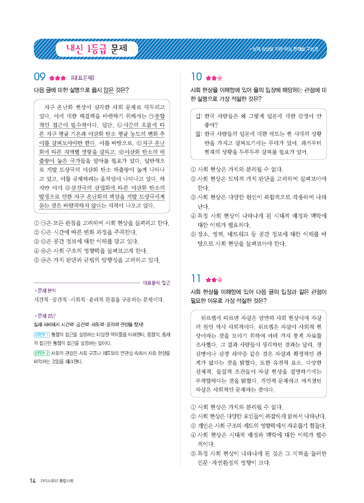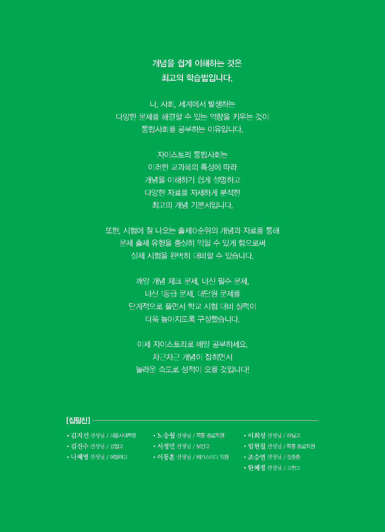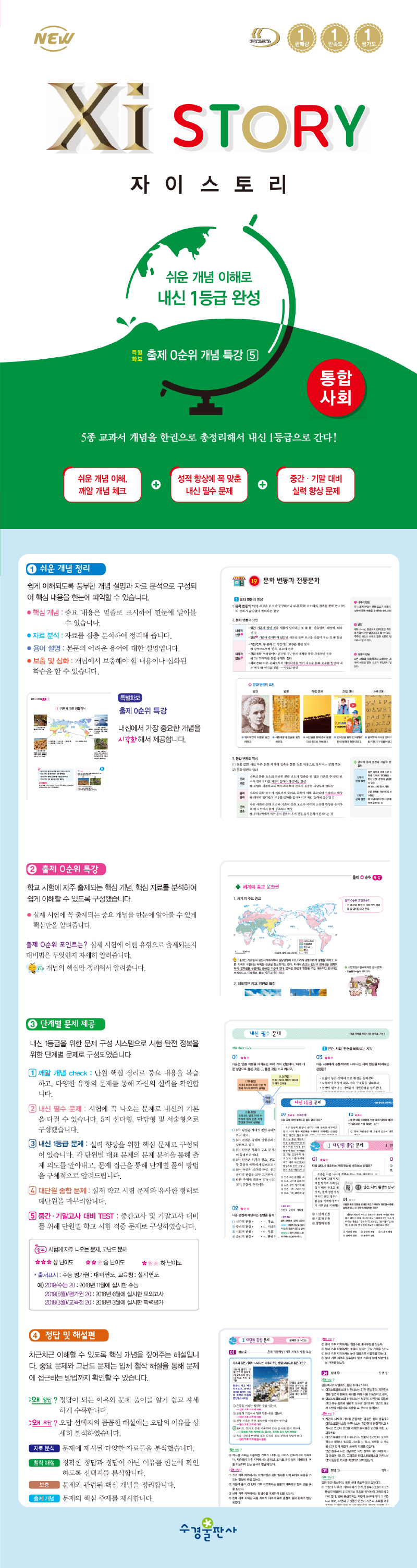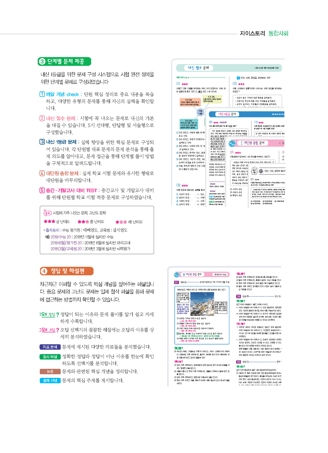 자이스토리 통합사회는 단계별 학습법을 통해 내신 필수에서 1등급까지 한 권으로 대비할 수 있도록 구성되었습니다.